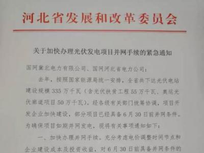 河北省发改委发布《关于加快办..钢铁购销网讯6月28日,河北省发改委发布《关于加快办理光伏发电项目并网手续的紧急通知》,要..[详细] |